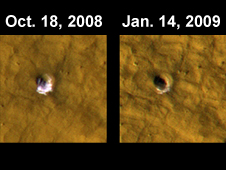 - ↑ Mars Reconnaissance Orbiter Sees Ice Exposed by Meteor Impact